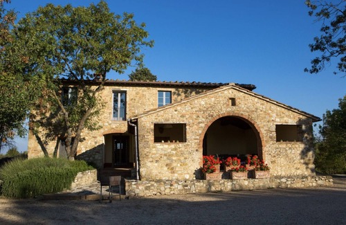The cottage in Castellina in Chianti has 6 bedrooms and has capacity for 12 people. The cottage is 480 m². The farmhouse, completely renovated, is located within a large property that extends over an area of about 460 hectares near Castellina in Chianti. Careful restoration work has brought it back to its ancient splendor. This ancient and majestic farmhouse stands in a dominant position on the hills of the Chianti Senese. From the house you can enjoy a splendid view of the surrounding countryside where vineyards and olive groves alternate. Careful restoration has returned the house to its ancient charm. Central position with respect to the Chianti area and the art cities of Siena and Florence.Within the estate there are alternating vineyards, olive groves and wheat fields, protected by woods and scrub. 5 km from Castellina in Chianti (food shops, tennis), 15 km from Poggibonsi (all kinds of shops), 20 km from Siena and San Gimignano, 50 km from Florence. Tennis 15 km, riding stables 15 km.The house is characterized by a garden and outdoor areas equipped with portable barbecue, equipped loggia and closed "L" shaped swimming pool measuring 12 x 8 m.On the ground floor:- large equipped loggia- living room with satellite TV and adjacent second living room with fireplace that opens onto the dining area- kitchen equipped with oven, dishwasher, freezer, microwave oven, American coffee maker and toaster- 1 double bedroom with single beds- 2 bathrooms with shower- laundry room with washing machineOn the first floor:- large living room from which you access 3 double bedrooms and 1 bedroom with two single beds, all with bathroom with shower- 1 living room with fireplace from which you access 1 double bedroom with bathroom with shower. Air conditioning in the bedrooms on the first floor.pets are allowed for a fee (Euro 30/animal/per week).Arrivals must be between 15:00 and 19:00.Guests have access to the farmhouse, the equipped garden and the swimming pool, open from May 1st to October 13th.Access via 300 m of dirt road.Other things to keep in mindAdditional costs to be paid on site:-Tourist tax per person/day: 2.00 EUR for 7 daysSecurity deposit: 150 euro at arrival and return and the departure assuming any damageon request: extra bed ( single bed) 90 euro per stay.baby bed on request. ( the first is included , the second 35 euro per stay.animal accept ( 30 euro per pets): Pets must be approved at the time of request and are the owner's responsibility. the villa is not fenced and maximum care of the animal and respect for the house is required